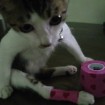I fetched the baby from the vet this afternoon and he is now sleeping peacefully in his nappy in his new home. The good news is that he has been eliminating on his own whilst at the vet, and eating well, too, so I won't need to help him out with that for now. He is very alert, super affectionate and happy to lick on my fingers. I think he is still desperately missing his mommy. That said, I think he is in good spirits otherwise. He is mobile and confidently dragging himself in and out of bed, fiercely pushing me to get out of the way. We'll be back at the vet on Monday for a check-up and possibly treatment.