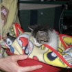 Kuching is a very small and shy kitten not older than 2 month. She is furry and has a cute white triangle on her face. My husband and I have found her 3 days ago crying near our appartment building in Suwon. She was alone, her mother cat never returned, and we took her to our home. For now Kuching is still timid and seems to be a bit scared of us, as her unhappy experience in the street probably thaught him... But her curiousity seems to win and she tries and investigates everyhting around her! I hope she can grow to be sociable and playful kitty! But now she often cries for her mom and she really needs a new loving family!!