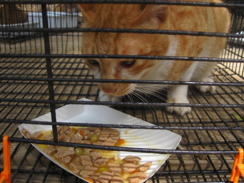 Louis is still in the small encloser with many kittens...I fell very sorry to him. T_T