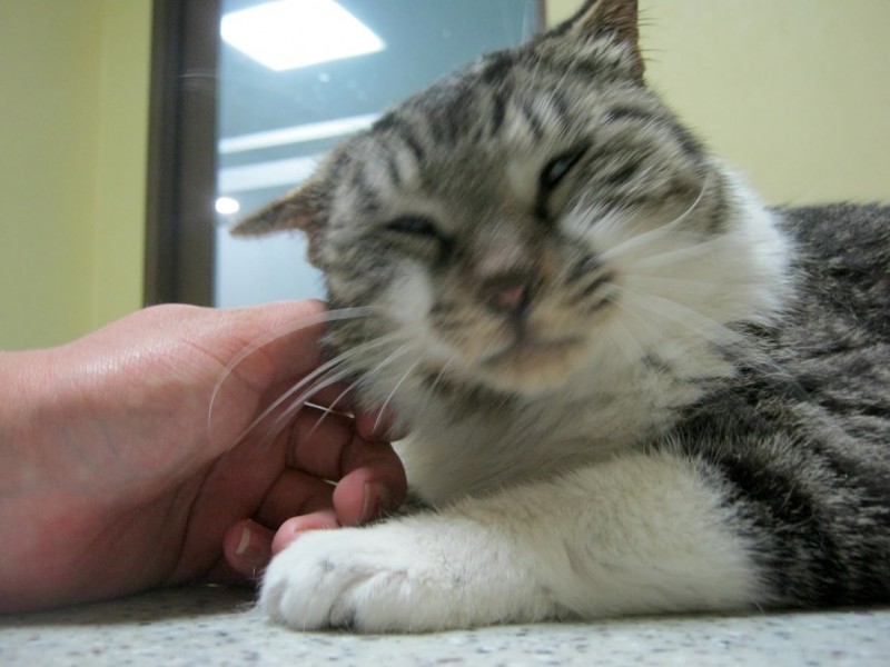 Charlie looking brighter and healthier! He couldn't stop purring as we gave him head and chin scratches.