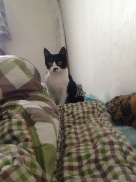 Glitch is a sweet kitty with a little crooked black mustache. She loves hanging out with us and playing fetch with a little catnip mouse.