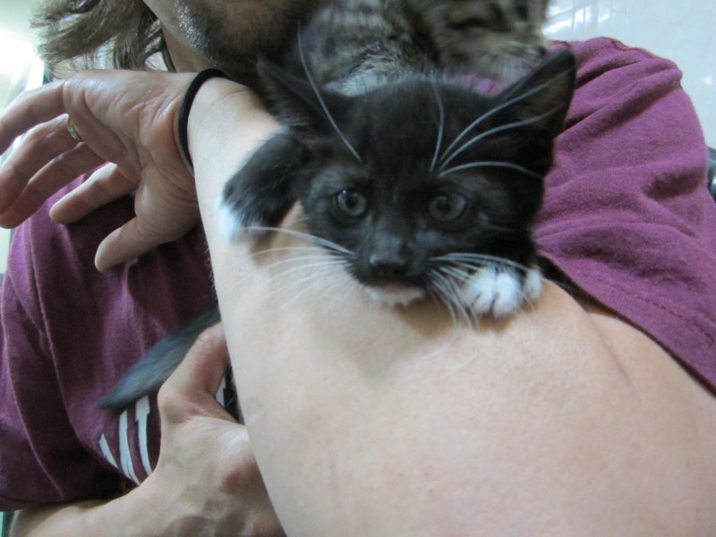 Eowyn is currently at our vet's with her brother and sister (also listed on ARK). They were dropped off by Jeonju Animal Rescue. My husband and I are visiting them every evening to play with them and give them some cuddles. All three of these kitties are super sweet and good tempered. They are pretty starved for affection and all zoom out as fast as they can to get cuddles! They are super soft and love to just sit in your arms. They are ~8wks old.