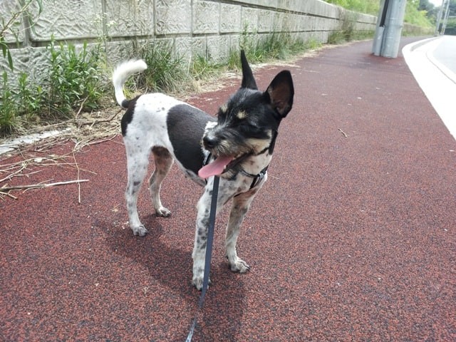 Aug 24 UPDATE: Hoochoo just went into a heat cycle. She's not a big fan of the diaper, but I'm trying my best to keep it on her. Otherwise, she is doing well. She's gained nearly half a kilo, which is great for her tiny frame. The vet thinks 5kg would be a very healthy weight for her, and she's well on her way. Loose leash walking continues to be a challenge, but she's making slow progress through 1:1 training sessions. Lastly: a milestone! Hoochoo has finally figured out what to do with toys! It's very cute---and she's fallen in love with her little ball and likes to play fetch. She's also very good about giving the ball up, too!