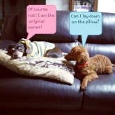 Winnie, aka Louie, aka Bob, relaxing with his new big sis on the ride home.