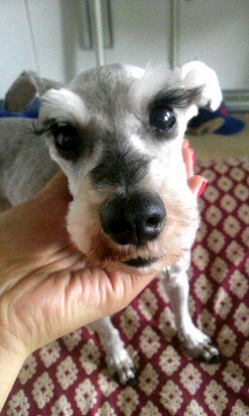 URGENT! Mini schnauzer in need of a new foster home. She is 12 years old, 5.5 kgs, and very healthy. She had her check up about 6 months ago and her teeth scaled about 4 months ago. She is house trained and very well behaved. She is very calm but loves to play and get belly rubs. She is quiet, plays well with other dogs. She is very excited and happy at first but calms down quickly. I don't know if she is good with cats because I have never seen her around a cat but Blanche is so calm I would be surprised if she did not get along with other species. She knows a few commands (high five, sit, give me your paw, ect). *She looks very different with LONG fur and SHORT fur so I posted photos of both*