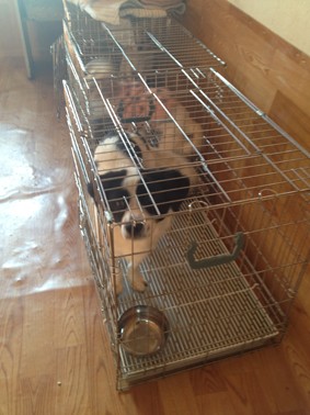 Oreo is a new addition to the shelter; he is a gorgeous little boy; looks like a miniature Border Collie. He's very affectionate and playful and loves people and other dogs. When he's in his crate, he's very calm and quiet; no barking at all. He was found by a kind ajumma who brought him to the shelter. He is waiting to be neutered. He is the cutest little thing :D We're not sure how old he is, maybe around 4? And he seems quite healthy.