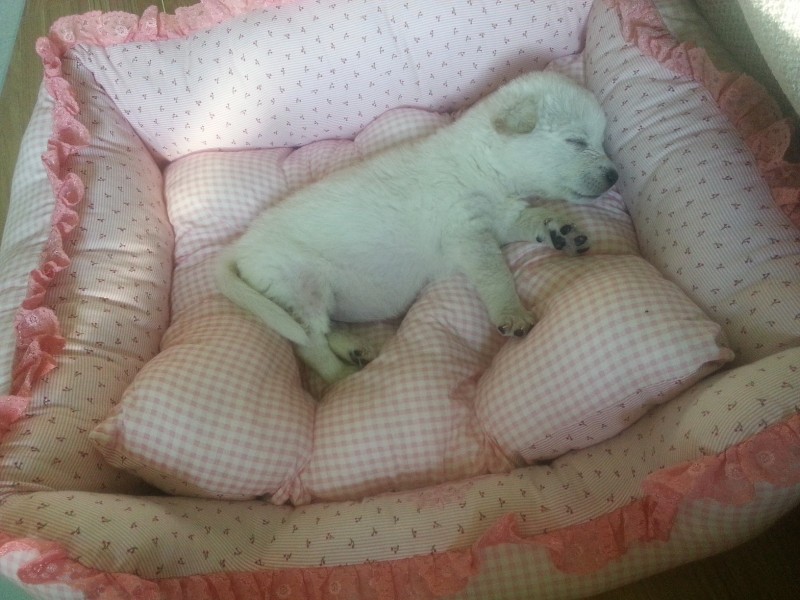 Gomi is made of tough stuff! She is only half the size of her brother but has no problem taking him on and usually winning the play fights. She is also a little lady of luxury, she takes an instant liking to any doggy beds or cushions that are put on the floor.