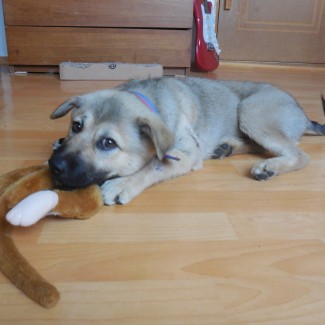 So Bruno will end up probably double the size he's now. Not as big as a typical Jindo or German Shepherd, smaller. Bruno has the build of a German Shepherd and the colouring.
