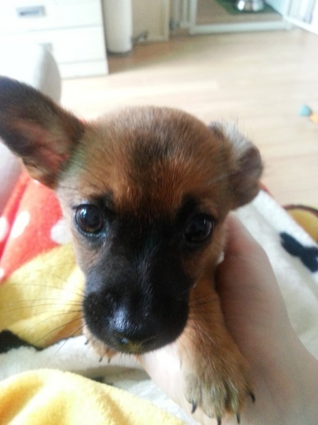 Maya is doing really well in her foster home! Here is an update from her foster parents: "She is as cute as ever - bigger and her ears are standing straight up now. She is so energetic and playing and pouncing at the rabbit =) he seems to have become a little more at ease with a hyper puppy jumping on him from time to time. She is a bundle of joy - super happy puppy."