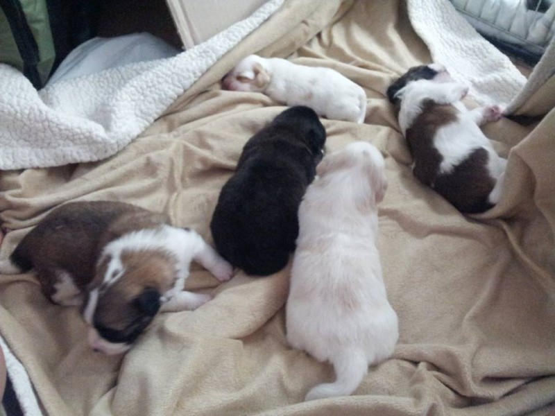 The puppies' mother is a small (10-12kg) brown and white dog. I'm not sure about the father. Here is a brief description of each puppy: