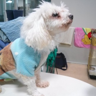 Ari is a malti-poo mix. She was abandoned by her owner in 2013. Her right hind leg had surgery but she is fine now. She is friendly as she has been socialized with other dogs and people.