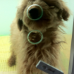 Pee Wee does cry a bit when we leave him in the cage, but we have noticed if he has had enough exercise that day he puts himself to sleep! 9:00 pm seems to be his bedtime that he chooses. Because it is still too cold out for him we have started wrapping him up in a blanket and taking him for walks. He really loves it and gets lots of attention from others. He is very curious about the outside world and he gets tired out from looking at all that is has to offer.