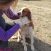 Sally is a Brittany spaniel(we think). She's a hunting dog. She's really smart and cute and friendly. She can sit and give the paw and she wants cuddles! She ran around the yard with Latte and Myungju for the afternoon and they looked like they were having a lot of fun.
