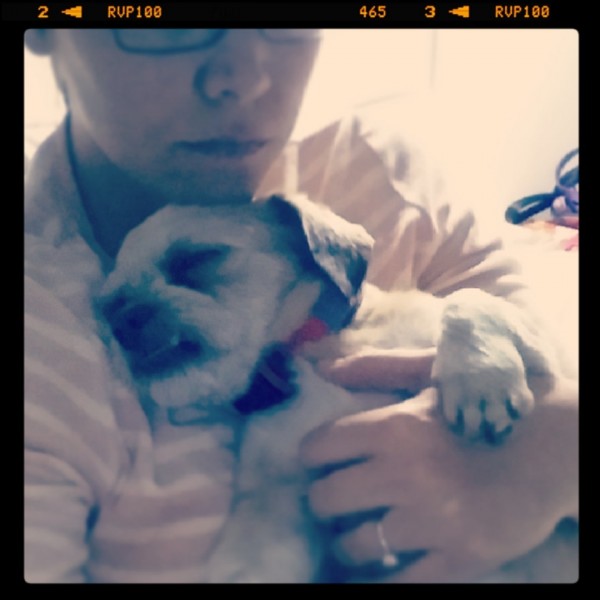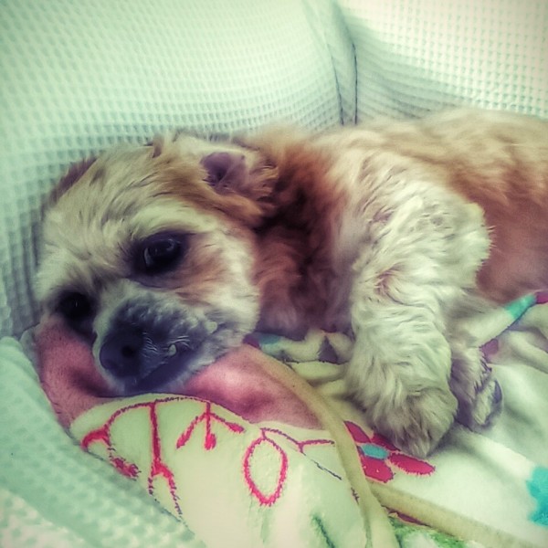 This little cutie just survived an ordeal after being rescued from a small river in Cheonan. I heard that two foreign guys fished him out of the water on Sunday afternoon. I found him a few hours later lying cold, wet, and shivering in the grass on the river bank. He was really scared but did not growl or bite once whilst I wrapped him in blankets and carried him off. He is currently boarding generously at the vet for one week. He is seemingly uninjured and in good health but updates will follow. I will be putting up posters in the area in case he has owners looking for him. His coat is in good condition and it looks like he has been groomed recently. I have spent a few hours with him and he has a very calm disposition lying sweetly next to my lap and being content to take in his surroundings. He does not snort or bark, and dealt tolerantly with my curious jindo's sniffing. I believe that indicates he is comfortable around other dogs. He also cuddled up to a lady at the vet and that shows he is trusting and friendly towards strangers. He seems unneutered but I will be able to give more information on his age and health condition once I've consulted the vet. Please consider helping this little buddy out! He has been traumatized but clearly wants to be loved very badly. We only have one week!