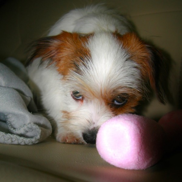 Lizzy is a sweet, loving puppy looking for a permanent home. She loves being pet and held, and will sit still in your lap looking up at you with loving eyes. She was born in Asan shelter, housed with many other dogs, got along well with them and seemed submissive. She's been in foster care a short time so she is still adjusting to home life. She's quickly coming out of her shell and adapting well. Because she's a puppy, she's just getting the knack for walking on a leash. Until she is completely trained to go outside, she has a designated area she uses and is pad trained. Lizzy is about 3 months old and appears to be a Parson Russell terrier mix but, that is purely speculation. Full grown, she should be around 5kg. Her hair is thin and doesn't shed much.
