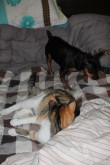 True to her mini-pin nature, Peg is a super snuggler and burrower!