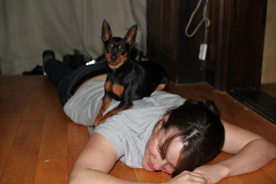My husband and I adopted an 8-year-old Minpin we named Ruby (since her coloring is red). Ruby was dropped off at the local shelter with a 1-year-old pug. The two had belonged to a single soldier who was deployed to Iraq, and he had no family willing to care for his dogs. The young pug was adopted immediately, but the adopter only wanted the pug. Ruby cried when the pug was removed from their shared cage. Shortly afterwards it was discovered Ruby had breast cancer. No matter. She beat the cancer and our little warrior has been a member of our family for over four years. We gave permission for our name to be released if the soldier returned and inquired about his dogs, but we've never heard from him.