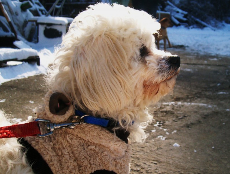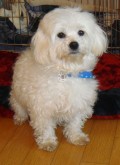 Otto is a Maltese mix (we think). He's such a cute , friendly & happy little dog. He's now pee-pad trained which is good for us as we live on the 17th floor. He's also happy to 'go' outside. His chest/tummy infections have now cleared up & he had his first shots last week.