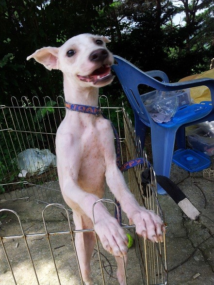 "You wouldn't even recognize him! His fur is growing back really quickly and he's putting on weight. He has so much energy now, when he was at the park yesterday he was trying to play with two 3 month old puppies and they were horrified because he kept running in circles and leaping over them. It was hilarious and cute at the same time. Hopefully I can get some footage of him being silly.