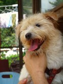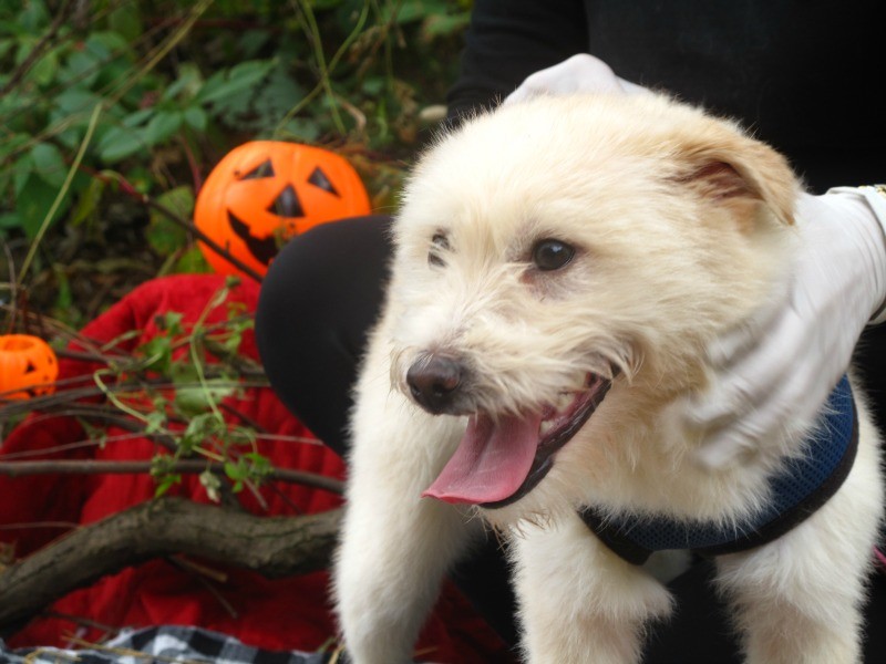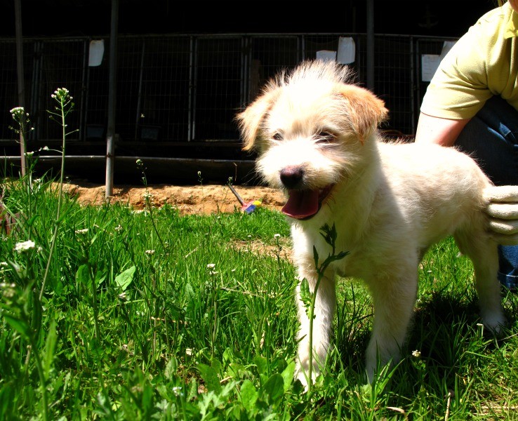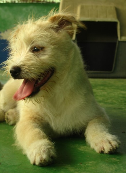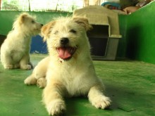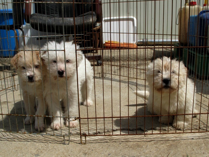 Russia is a friendly, sweet, healthy baby girl who was born at Asan a little over two months ago. Her mom was brought to the shelter already pregnant, and gave birth to a litter of four puppies. (3 boys and 1 girl) She is a little shier and smaller than her brothers, and not quite as fluffy. Her fur is more wiry, like a terrier, and she also has some brown whereas the boys are very white. These little cuties will be on the medium to small side when they are full grown I would guess, since their mama is not very big. The sooner they are adopted, the better! It's important for them to begin socializing (both with people and other dogs) early, so if you are interested in Russia, or her brothers, please contact me at [email protected].