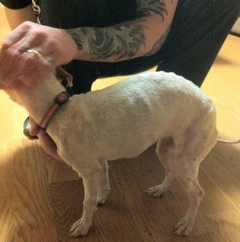 We saw Fiona at the end of the row of cages. She was dirty, skinny, and bleeding. She had matts in her fur so thick they were tearing off, and she was in her small cage with two very obviously more dominant male dogs. We couldn't stop thinking of her poor little face, so several hours later we went back and got her out. We took her straight to the vet to get her checked for heartworm, get shaved down, and get medicine for her skin. No idea what her story was, but the pound worker said they were planning to put her down in two more days. Luckily, she is heartworm negative, and besides the boo-boo's was in great health.