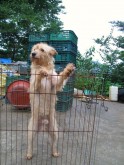 Jack is a happy young dog who lives in the back pen at Asan with about 15 other dogs. He has been living at Asan for at least 6 months, but I am not sure exactly where he came from. I am assuming he was brought to Asan from a city pound, either Busan or Cheongju City Pound.