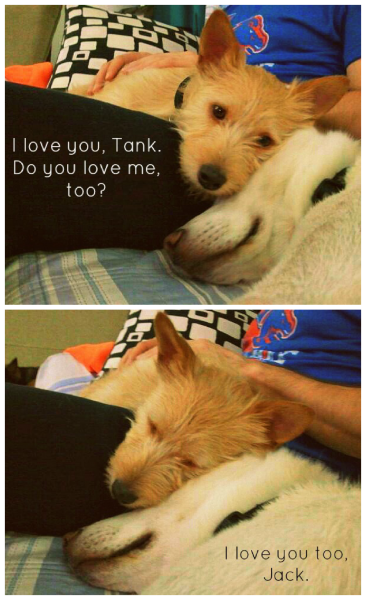 Yippeeeeeeeeeee!!!!!!! How wonderful! Nice work Jack! Looking at those photos of Tank and Jack you can't help but think it was meant to be! Two very happy and indeed lucky pups!!